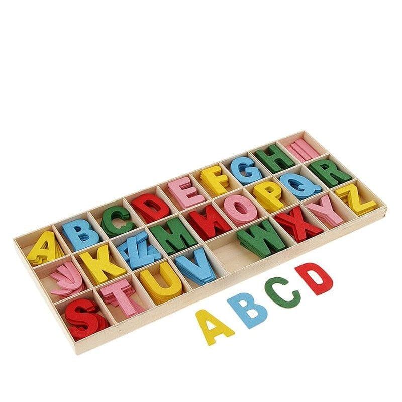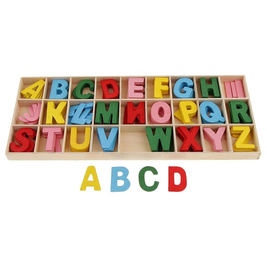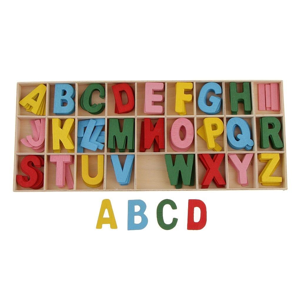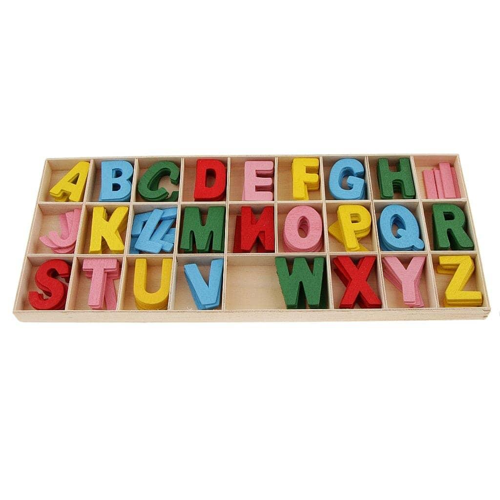 ➡️ O Alfabeto divertido contém 156 peças de madeira, sendo 5 de cada letra.